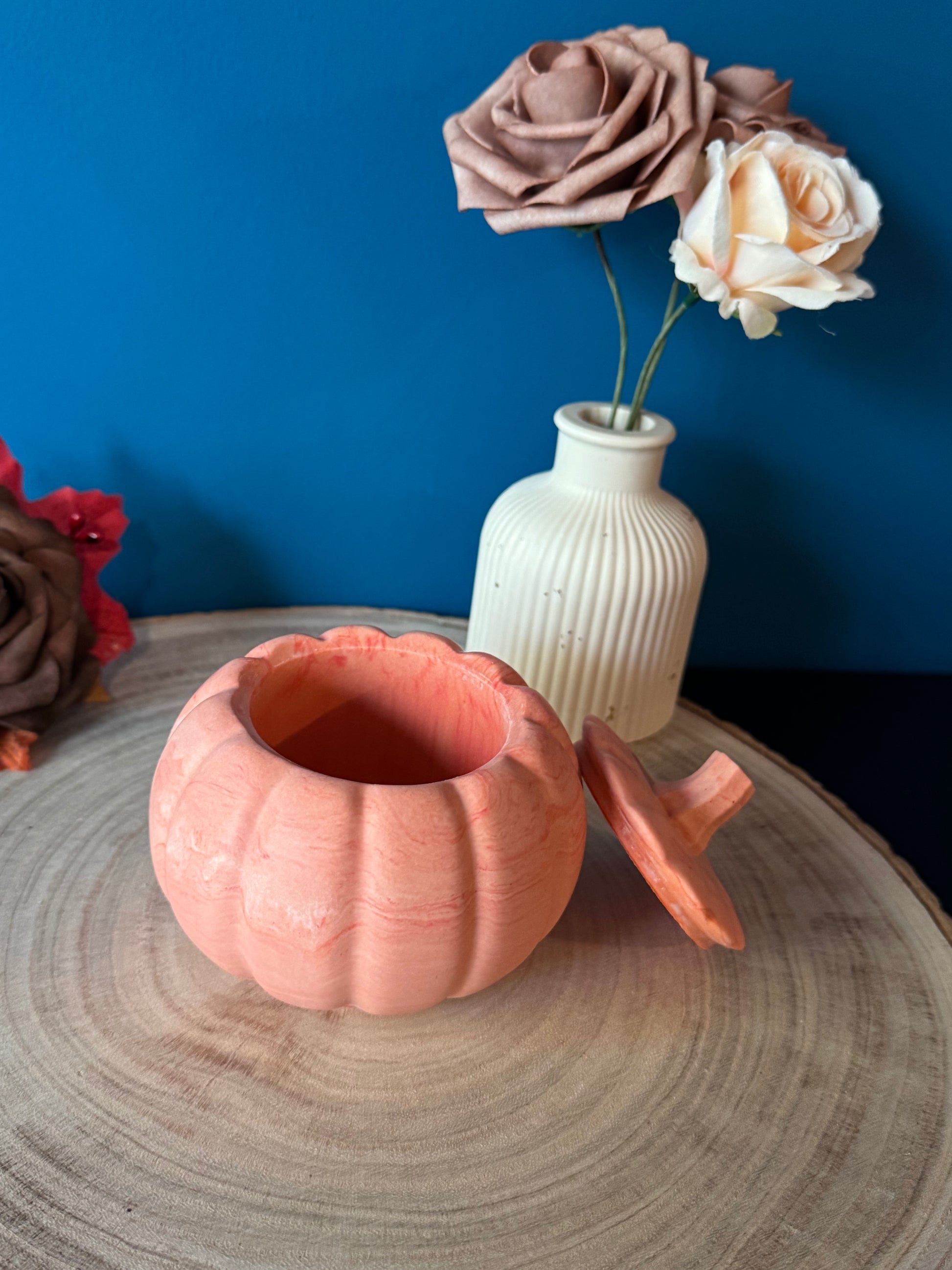 Citrouille décorative en jesmonite – Pot avec couvercle 🎃